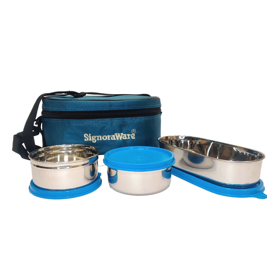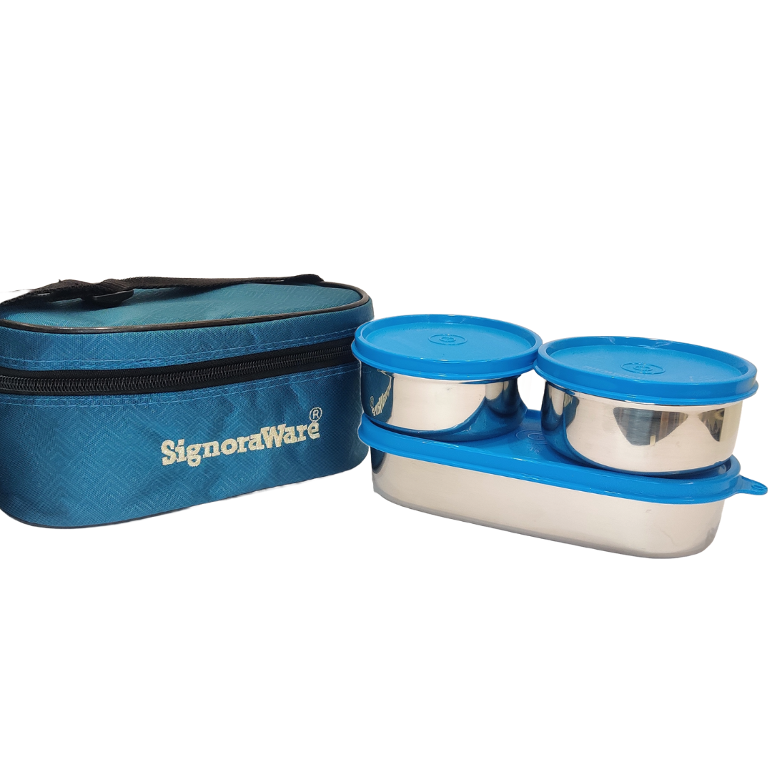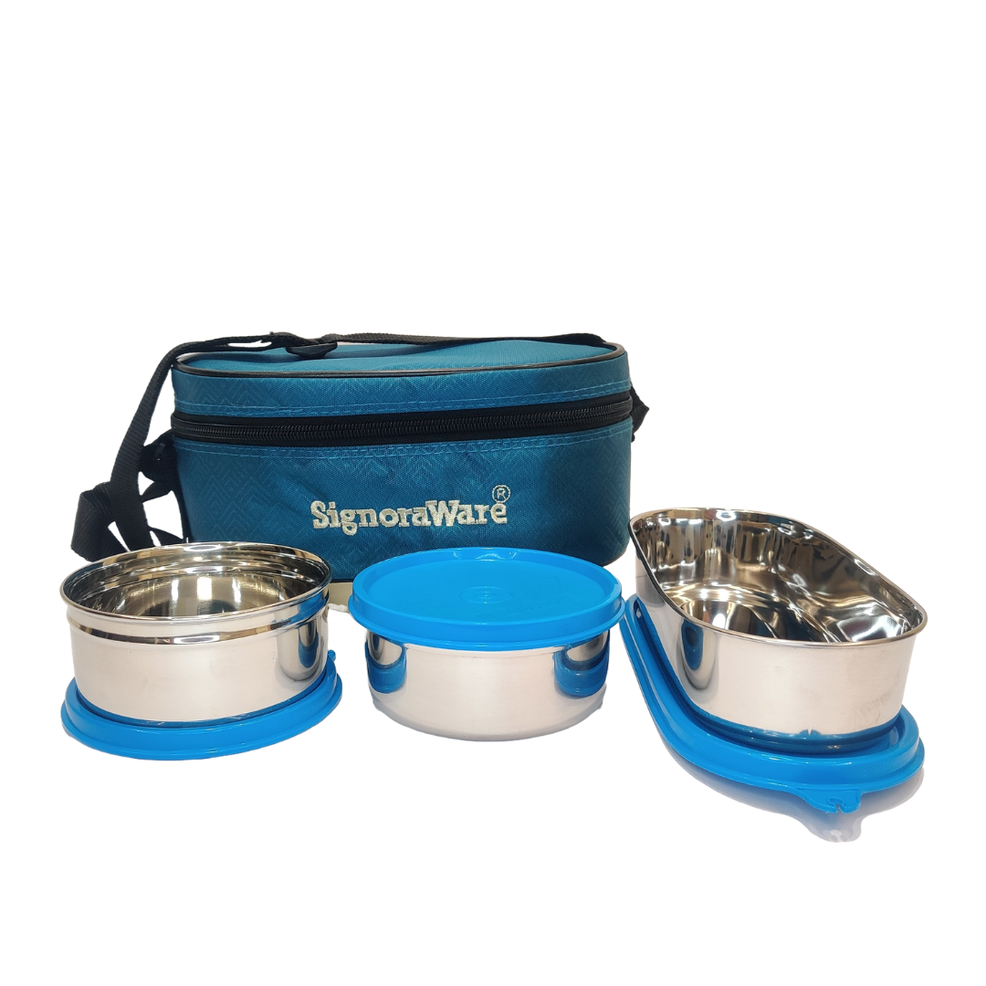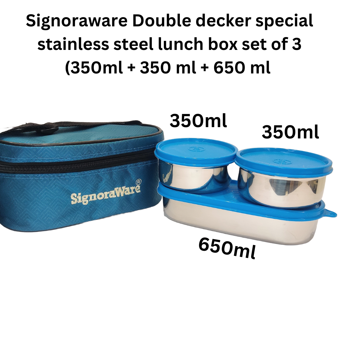 Signoraware Double Decker Steel Lunch Box (350ml + 350ml + 650ml) Set of 3 with Bag: The Ultimate Solution for Stylish and Convenient Meal Storage