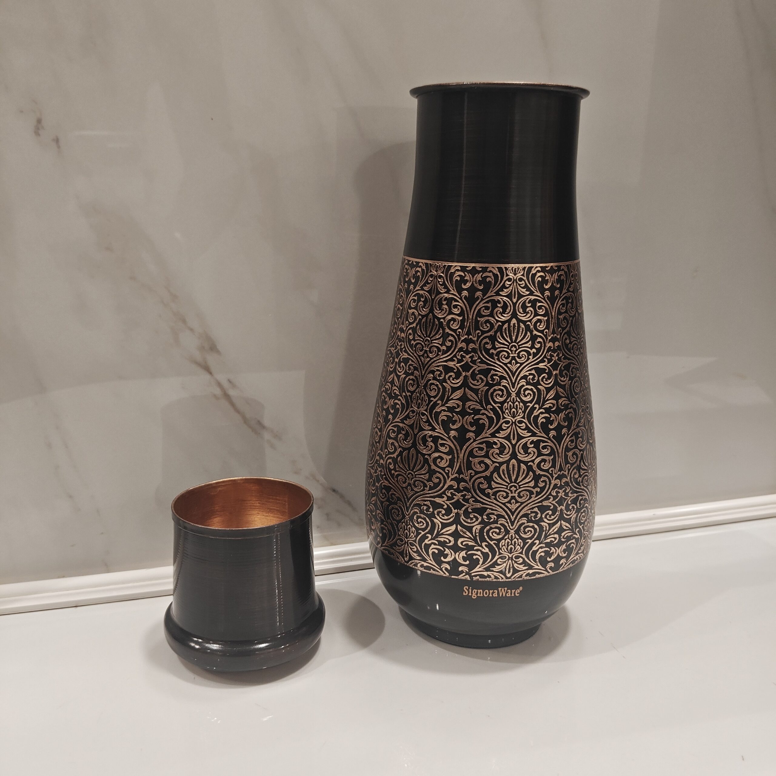 However, please note that this copper pot is meant only for storing and drinking water. It is not designed for travel or carrying liquids, as the cap of the pot also functions as a glass and does not lock tightly. Its elegant design makes it perfect for home use, gifting, or traditional décor purposes.